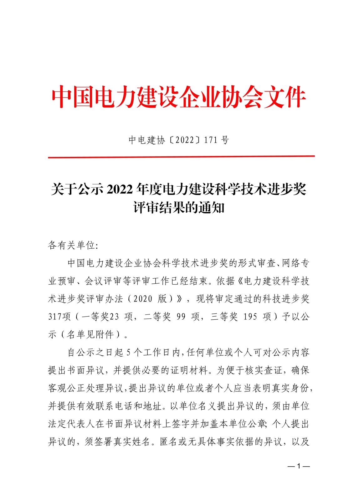 附件下载:2022年电力建设科学技术进步奖结果公示名单.rar
