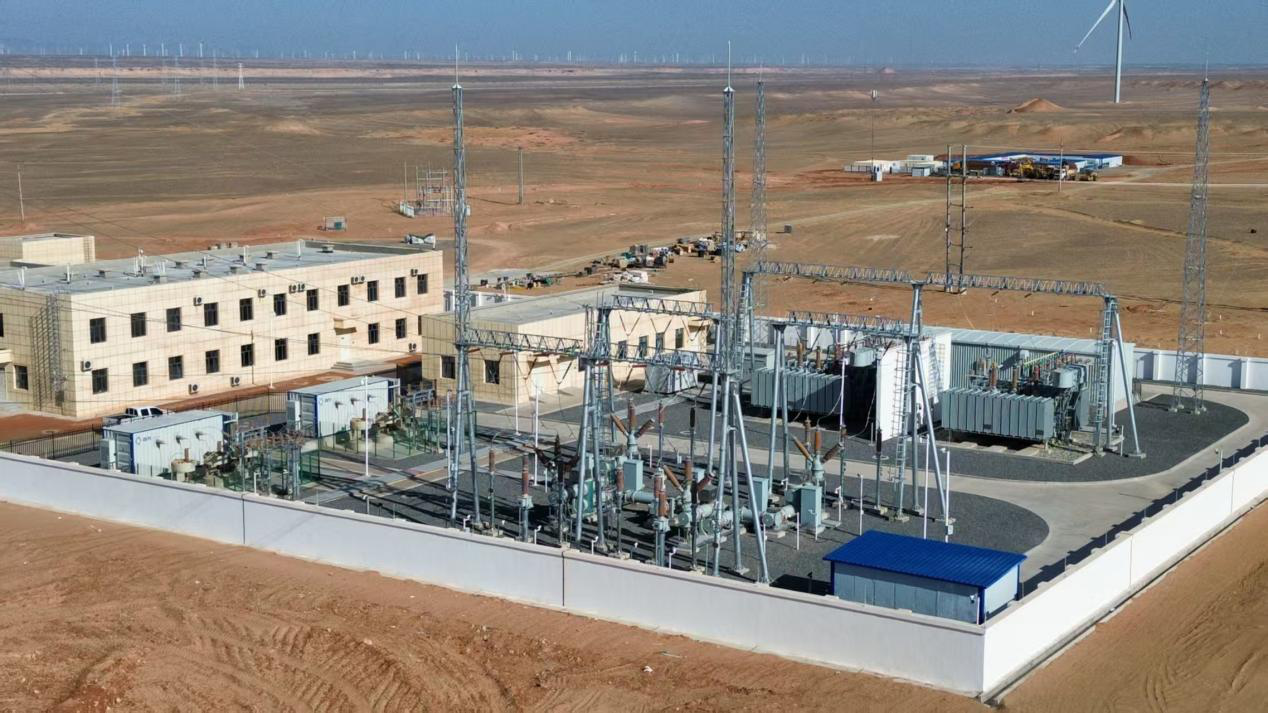 中国能建新疆院承建的烟墩20万千瓦风电配套110千伏升压站及送出线路工程实现全容量并网