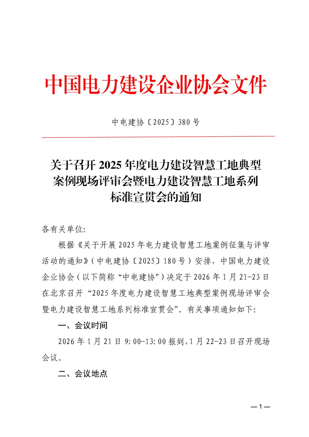 关于召开2025年度电力建设智慧工地典型案例现场评审会暨电力建设智慧工地系列标准宣贯会的通知