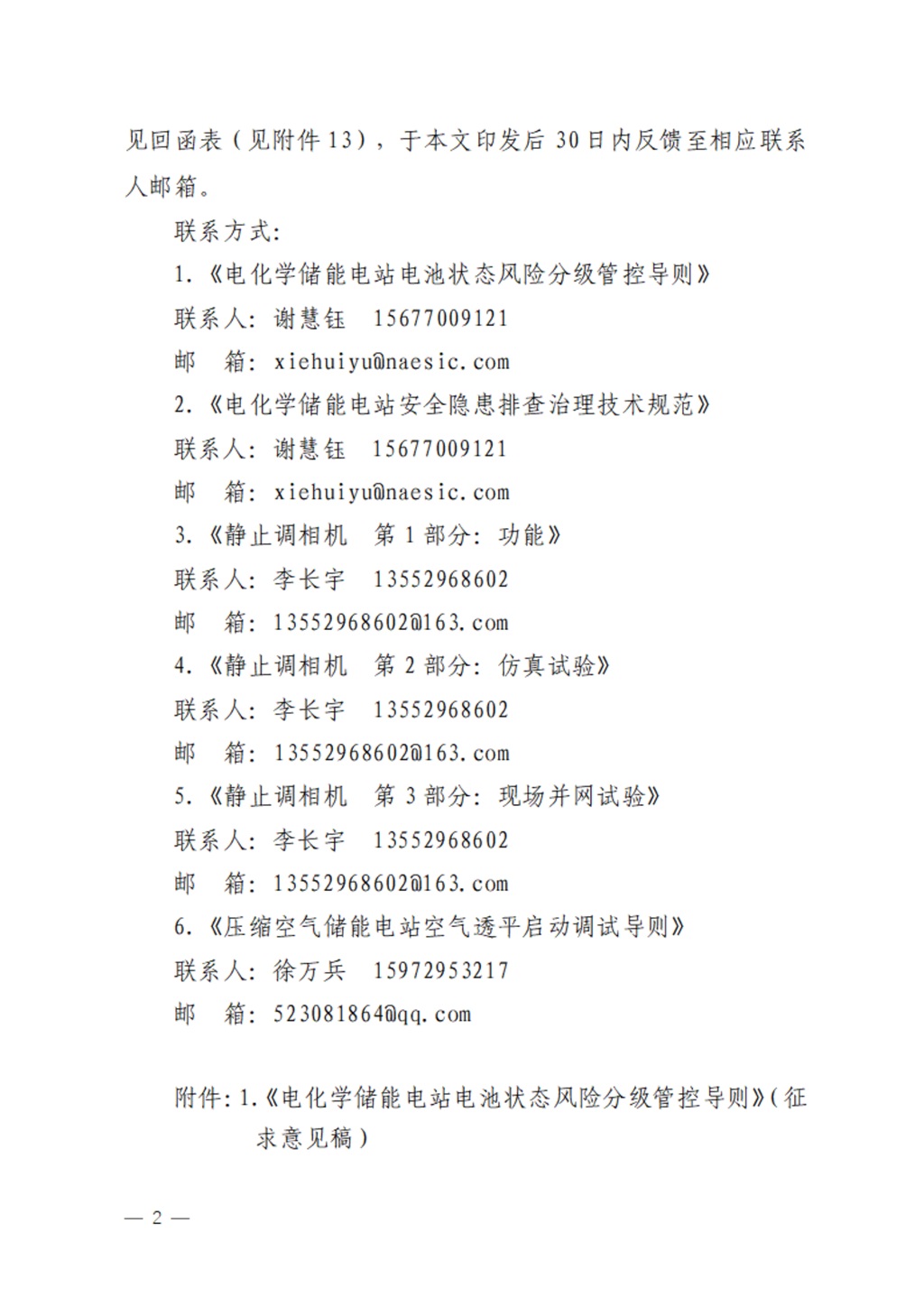 关于《电化学储能电站电池状态风险分级管控导则》等6项中电建协团体标准征求意见的函