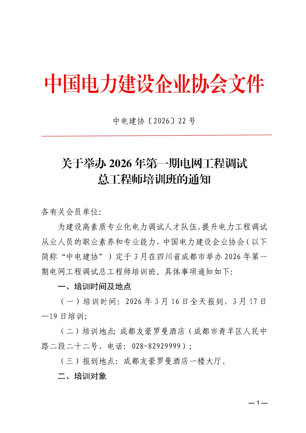 关于举办2026年第一期电网工程调试总工程师培训班的通知.pdf